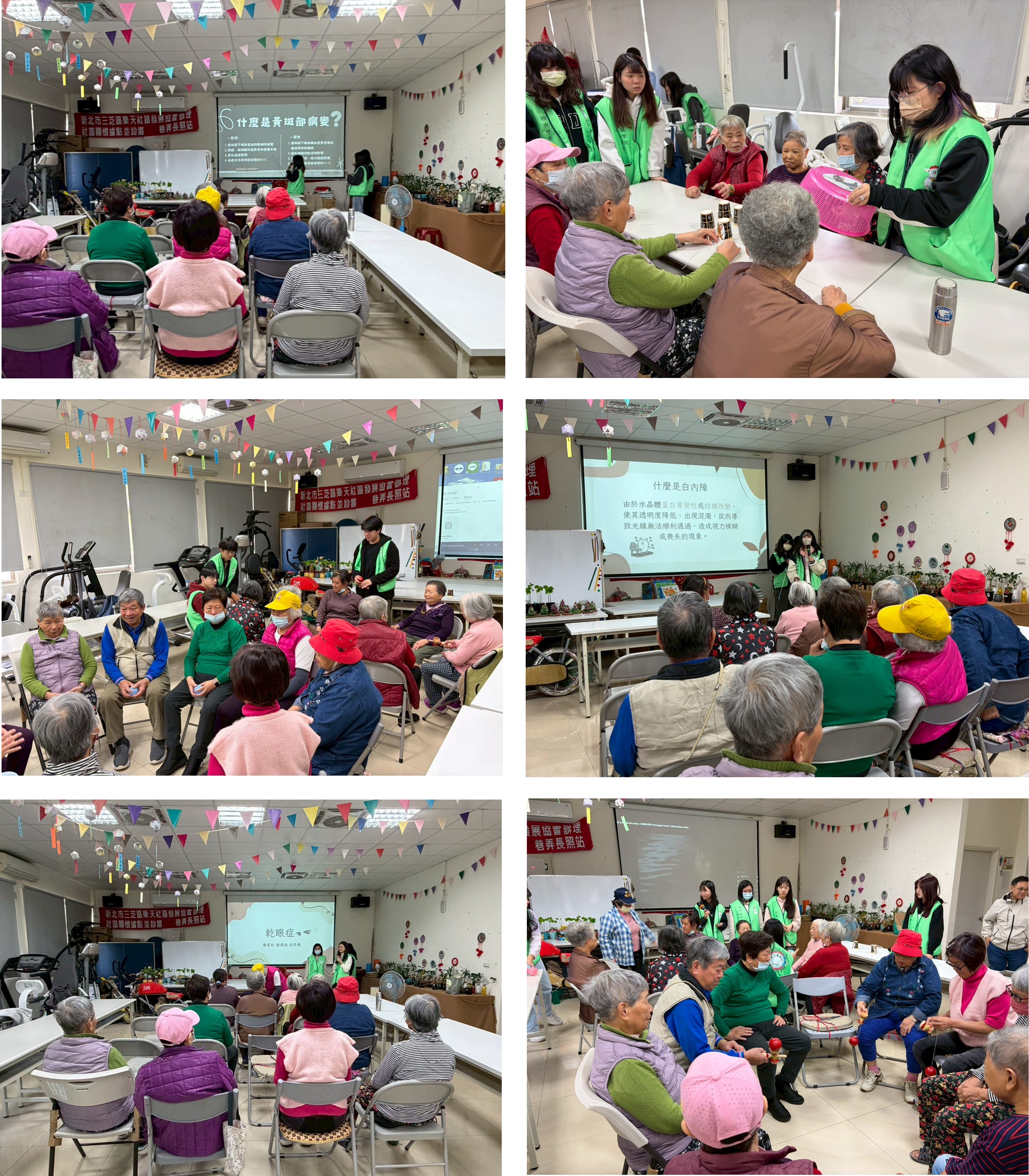 延續前次視功能篩檢實踐活動,本次由本系吳函芳老師帶領大三學生回到樂天社區,替長者進行 OCT 檢查,並透過衛教說明與互動遊戲,將專業知識轉化為貼近生活的視覺保健服務。 本次活動採分組方式進行,全班學生分為教案組、活動組與 OCT 組,分別負責衛教簡報與疾病介紹、互動遊戲設計與帶領,以及 OCT 檢查實作。透過不同角色的分工合作,學生不僅提升了專業操作與臨床判斷能力,也累積了與高齡族群互動及社區服務的實務經驗,使課程學習更加貼近實際應用。